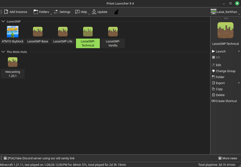 1. Within the PrismMC Launcher, right click LasseSMP-Life, and select Edit.